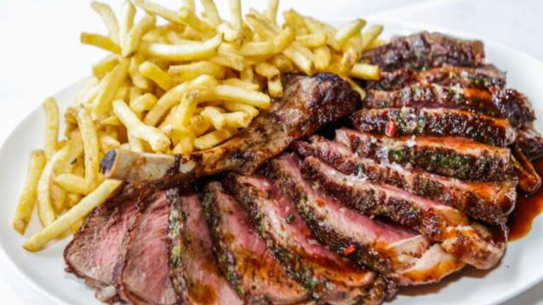 Ingredients 4 beef ribeyes 2 peaches, sliced Alterra 100ml white wine 1 onion, finely chopped 2 tablespoons sugar Extra virgin olive oil Aenaon Potatoes, sliced Fresh thyme Salt Floros, pepper…