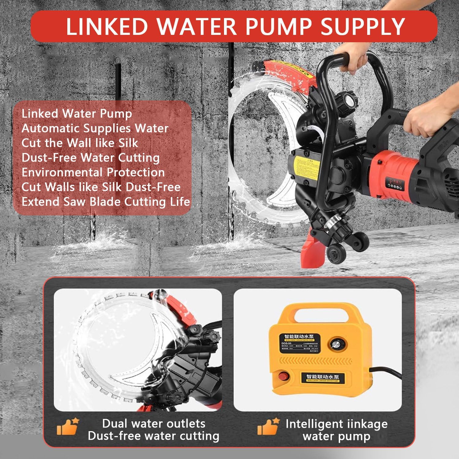 ◐ 9500W Electric Wall Concrete Saw, Adjustable Cutting Depth, Adjustable Water Volume, Suitable for Marble, Granite, Stone, Ceramics, Concretes, Bricks, Rebars.◐ FEATURESElectric wall groove cutting machine is suitable for cutting walls with a depth of 29cm/11.4″. Supports horizontal, vertical, and multi angle cutting, rapid prototyping, and no dead corners.The concrete circular ring saw is equipped with a high-frequency and high-power 9500W pure copper motor.Equipped with intelligent water pump and water cutting.◐ PARAMETERProduct Name: Concrete SawRated Power: 9500WRated Speed: 3000rpmMaximum Cutting Depth: 29cm / 11.4”Power Cord: 2.5mWeight: 16kg◐ PACKING LIST1 × Concrete Saw2 × 40.8cm/16.1″ Saw Blade1 × Water Pump◐ If you encounter any problems during use, please feel contact us. We will reply you within 24 hours.