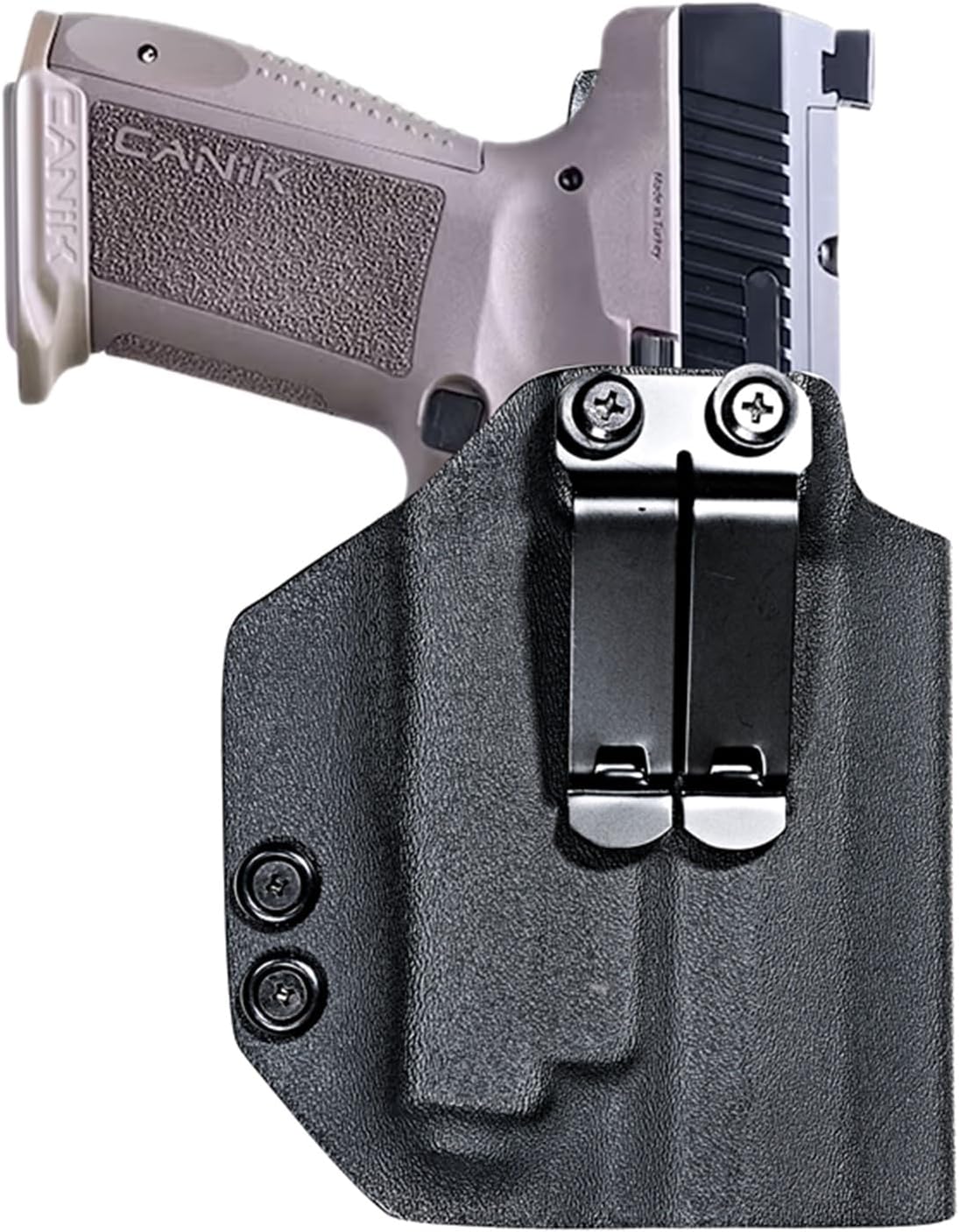 This professional-grade IWB (Inside WaistBand) holster is designed for reliable concealed carry, offering both comfort and secure weapon retention. The holster's streamlined design allows for discreet everyday carry while maintaining quick access when needed. Engineered to fit snugly inside the waistband, it provides a stable platform for your firearm while minimizing printing through clothing. The holster's construction focuses on user comfort during extended wear, making it suitable for both casual and professional environments. Its versatile design accommodates various carry positions, allowing users to find their optimal setup for concealment and draw efficiency. Whether you're right or left-handed, this holster adapts to your preferred carrying style while maintaining a low profile under clothing.
