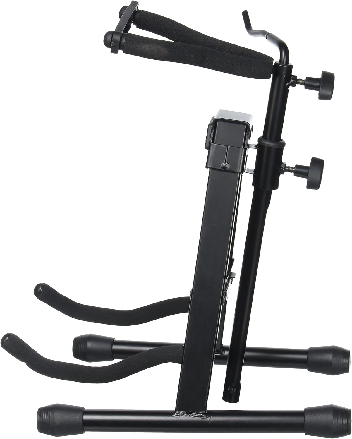 Product Description Stagg SVVN Folding Violin Stand with Bow Holder. Providing a safe and reliable cradle for your instrument, the Stagg SVVN Folding Violin Stand, comes with a handy hook for holding your bow. The SVVN Violin Stand has a simple, yet functional design that is perfect for travel and folds down for convenient, compact storage. Maxium neck height is 21 5/8-Inches. Distance between support arms and neck rest is 15 3/4-Inches. Box Contains 1x Stand