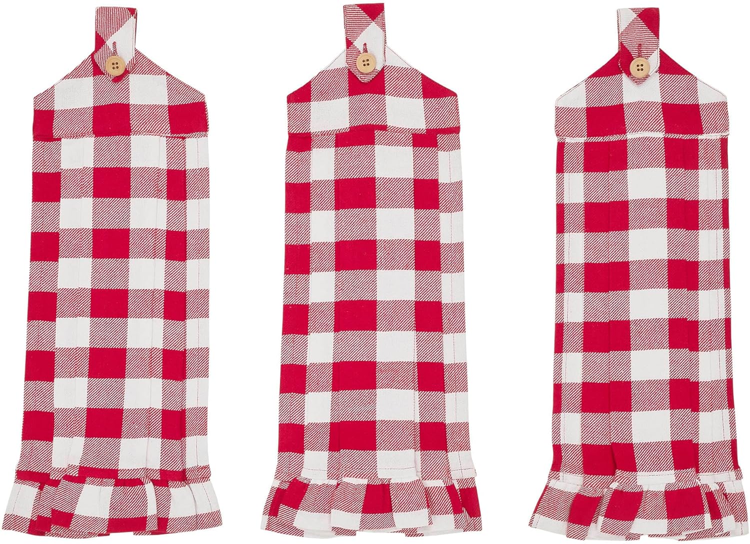 Elevate your farmhouse and country decor with the VHC Brands Cotton Annie Buffalo Check Blue Button Loop Kitchen Towel Set of 3. These 21x7-inch hanging kitchen towels bring a touch of rustic charm to your kitchen or bath. Crafted with a durable twill weave and featuring the classic buffalo check pattern, these textured towels offer both style and functionality. The button loop design makes them easy to hang by your stove, oven, or in the bathroom, providing convenient access wherever you need a hand towel. With their dusk blue color, they add a serene and welcoming atmosphere to your living space while maintaining a farmhouse-inspired feel. These high-quality cotton towels are not only absorbent but also built to withstand daily use. The VHC Brands Cotton Annie Buffalo Check Blue Button Loop Kitchen Towel Set of 3 is a perfect choice for those who appreciate the timeless appeal of buffalo check patterns. Add a touch of country elegance to your home with these versatile and stylish kitchen towels.
