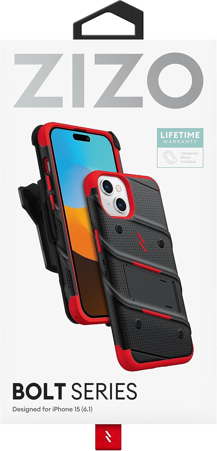 Military Grade Drop Protection - Protect your iPhone 15 with an award winning, patented, and certified 810.1-G 20 feet Military Grade Drop Tested phone cover. The ZIZO BOLT Dual Layer Impact Dispersion Technology provides protection you can trust. Holster Belt Clip - The ZIZO BOLT holster features a 360 degree rotating clip, hidden card slot,and a built-in kickstand to provide additional versatility and functionality. Adventure Bundle - Built for value. A complimentary ZIZO 0.33mm Tempered Glass with 100% Clarity and 9H Hardness is included with each purchase. Also comes with ZIZO Holster Belt Clip, and lanyard. Built in kickstand - take your binge-watching experience to the next level Designed for iPhone 15 Plue| ZIZO Cases are Built For Adventure and backed by ZIZO Lifetime warranty.